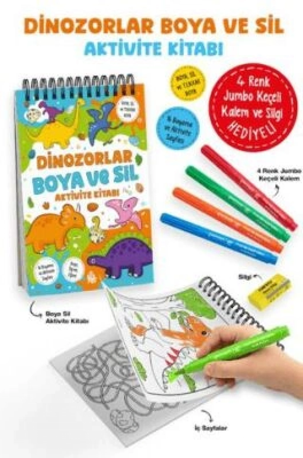 4 RENK JUMBO KEÇELİ KALEM ve SİLGİ HEDİYE!