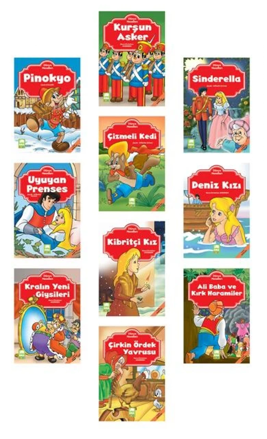 Dünya Masalları Seti HakkındaOkumaya yeni başlayan çocukların zevkle ve heyecanla okuyacağı bu seri, MEB okuma-yazma programa uygun dünya çocuk edebiyatının en seçkin örneklerinden derlenmiştir.Dünya Masalları Set İçeriği1- Sinderella 2- Uyuyan Prenses 3- Çizmeli Kedi 4- Deniz Kızı 5- Kurşun Asker 6- Kibritçi Kız 7- Pinokyo 8- Kralın Yeni Giysileri 9- Çirkin Ördek Yavrusu 10- Ali Baba ve Kırk Haramiler | |