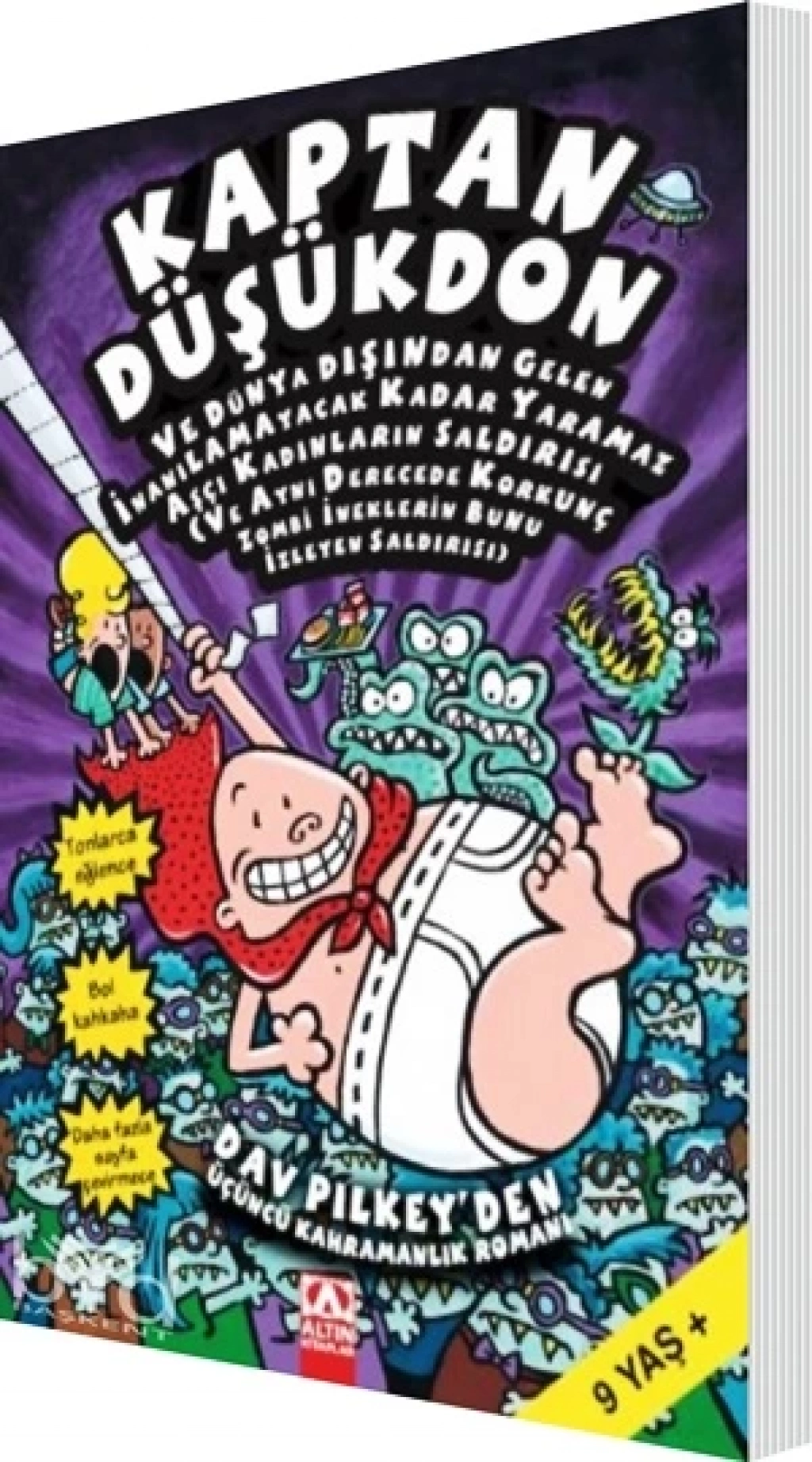 Kaptan Düşükdon, önce şeytan Dr. Bebekbezi’ni yendi, sonra da korkunç, konuşan tuvaletleri yok etti... Şimdi ise kendi canını kurtar-mak için savaşıyor. Bakalım Kaptan Düşükdon ve yaratıcıları George’la Harold, tüm dünyayı ele geçirmeye çalışan kılık değiştirmiş üç dev uzaylıyla nasıl savaşacak? Şimdi, olayları derinlemesine inceleyip Kaptan Düşükdon’un uzaylı macerasında neler yaptığını öğrenme zamanı.